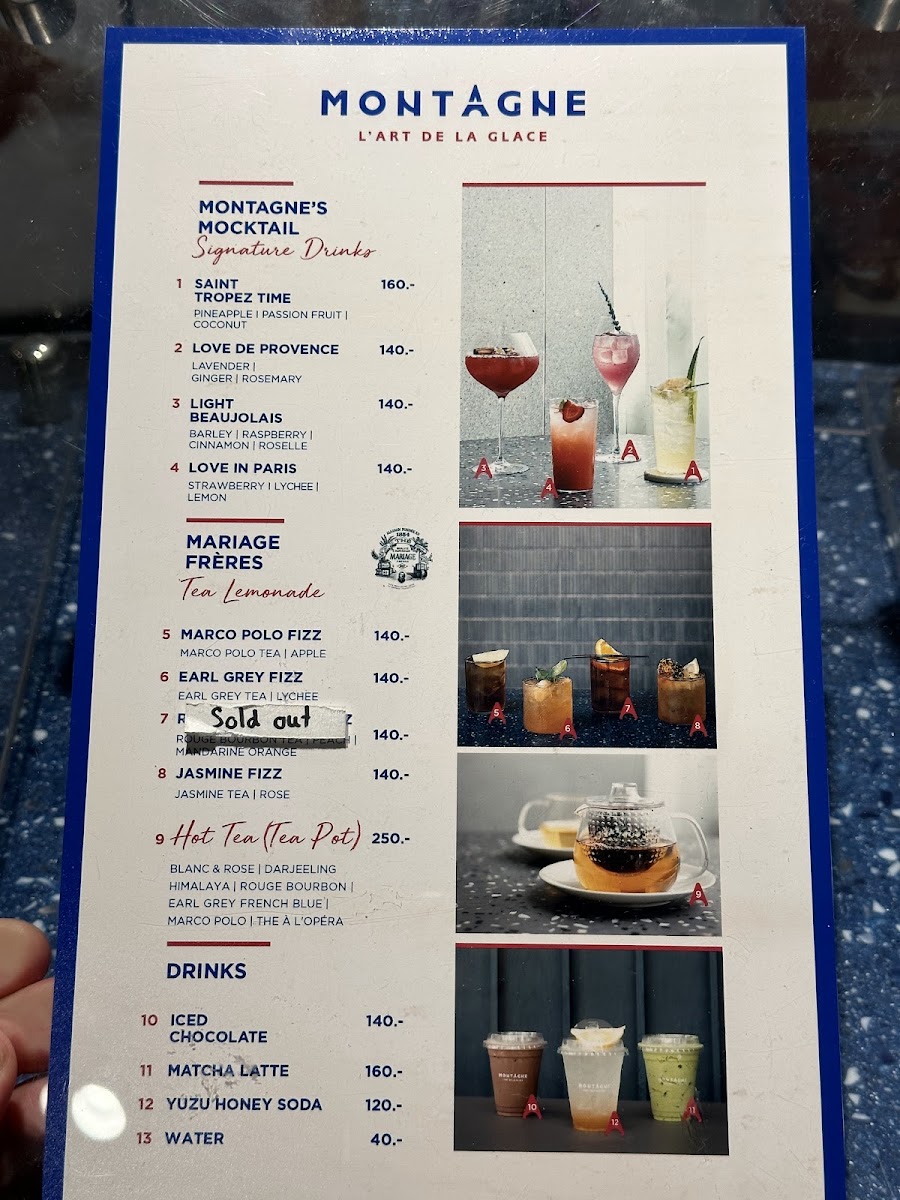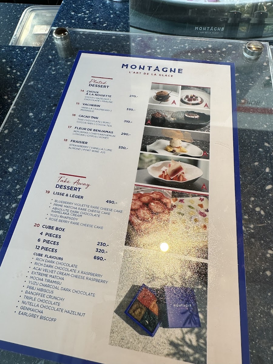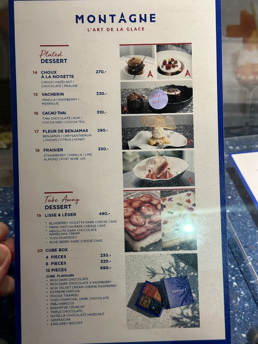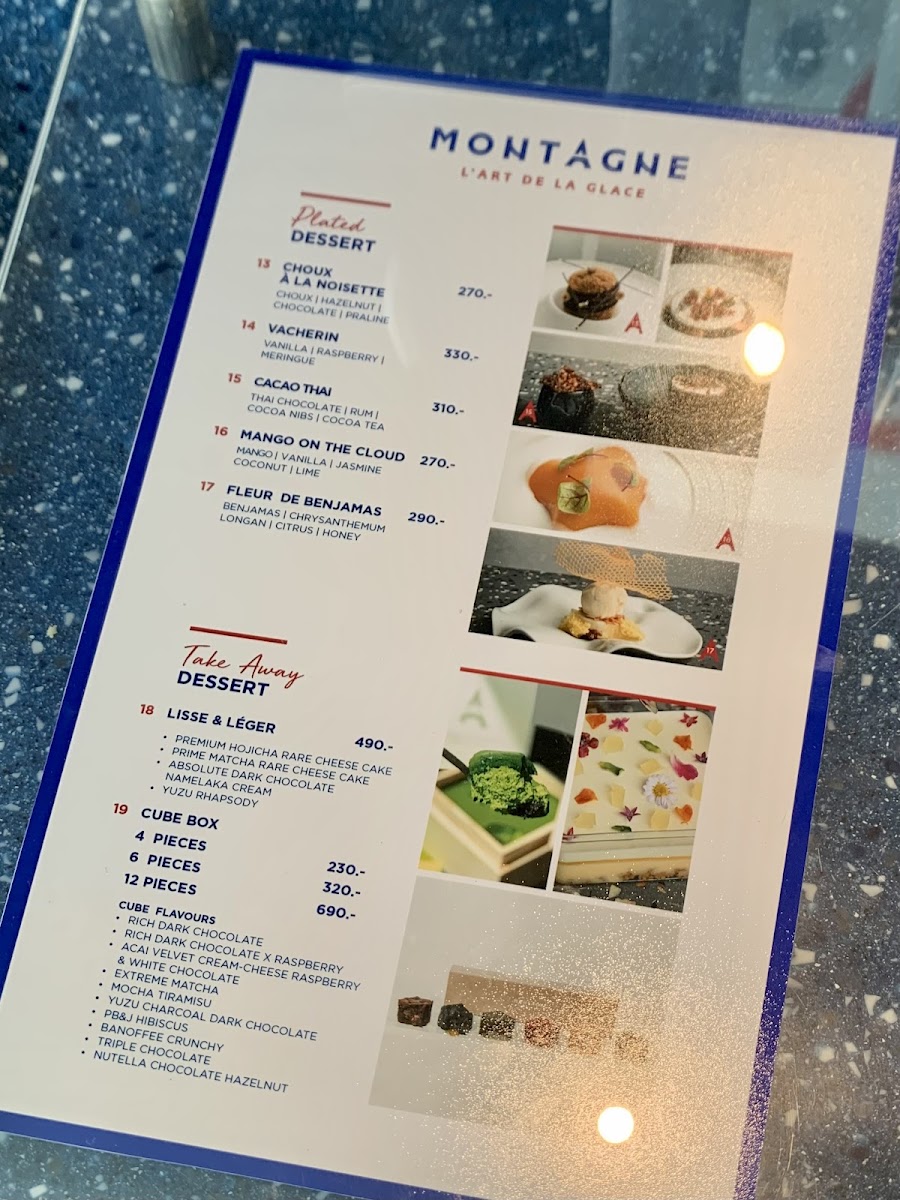 Montagne L'art de la glace is a charming ice cream shop and patisserie nestled in Bangkok’s Bang Kho Laem district. Though small and cozy, it crafts an impressive menu that stands out for its artisanal gelato and exquisite cakes. The shop’s unique flavors, like the rich Samurai dark chocolate with whisky and the refreshing Mangosteen sorbet, showcase a masterful balance of boldness and delicacy. Signature treats such as the Malt Granola ice cream, with its creamy texture topped generously with granola, and the creative Cube Box, featuring cookie crust cubes filled with varied sauces, illustrate their inventive approach to dessert.
